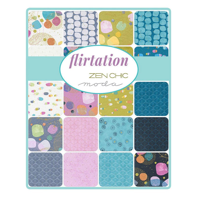 Savour the captivating charm of Zen Chic's FLIRTATION line, a fitting tribute to spring's brightness! Indulge in a vibrant colour scheme with touches of exquisite gold that includes aqua, chartreuse, teal, navy, warm yellow, and soft pink. This collection has something for every kind of quilter, from modern large-scale abstract forms to adaptable medium-scale designs and calming bicolor coordinates. With precisely matched colours, Zen Chic's amazing SPOTTED blender collection guarantees a flawless creative experience. Allow FLIRTATION to enthral you on your quilting adventure, providing a variety of choices to motivate your next stylish masterpiece. Let this collection take you by surprise and fall in love with the crispness of Spring!